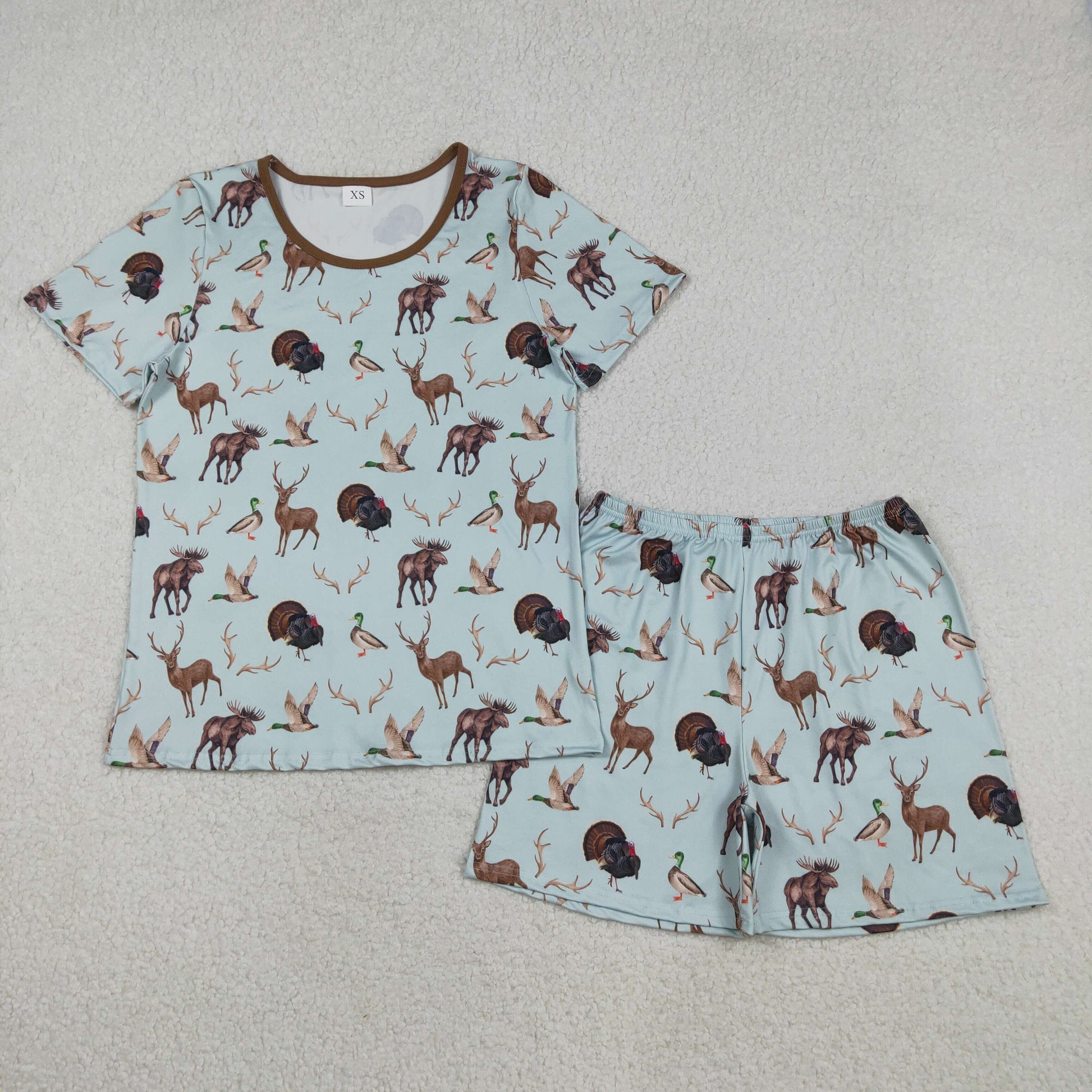RTS Adult Man Short Sleeves Deer Ducks turkey Shirt Shorts Hunting Pajamas Set