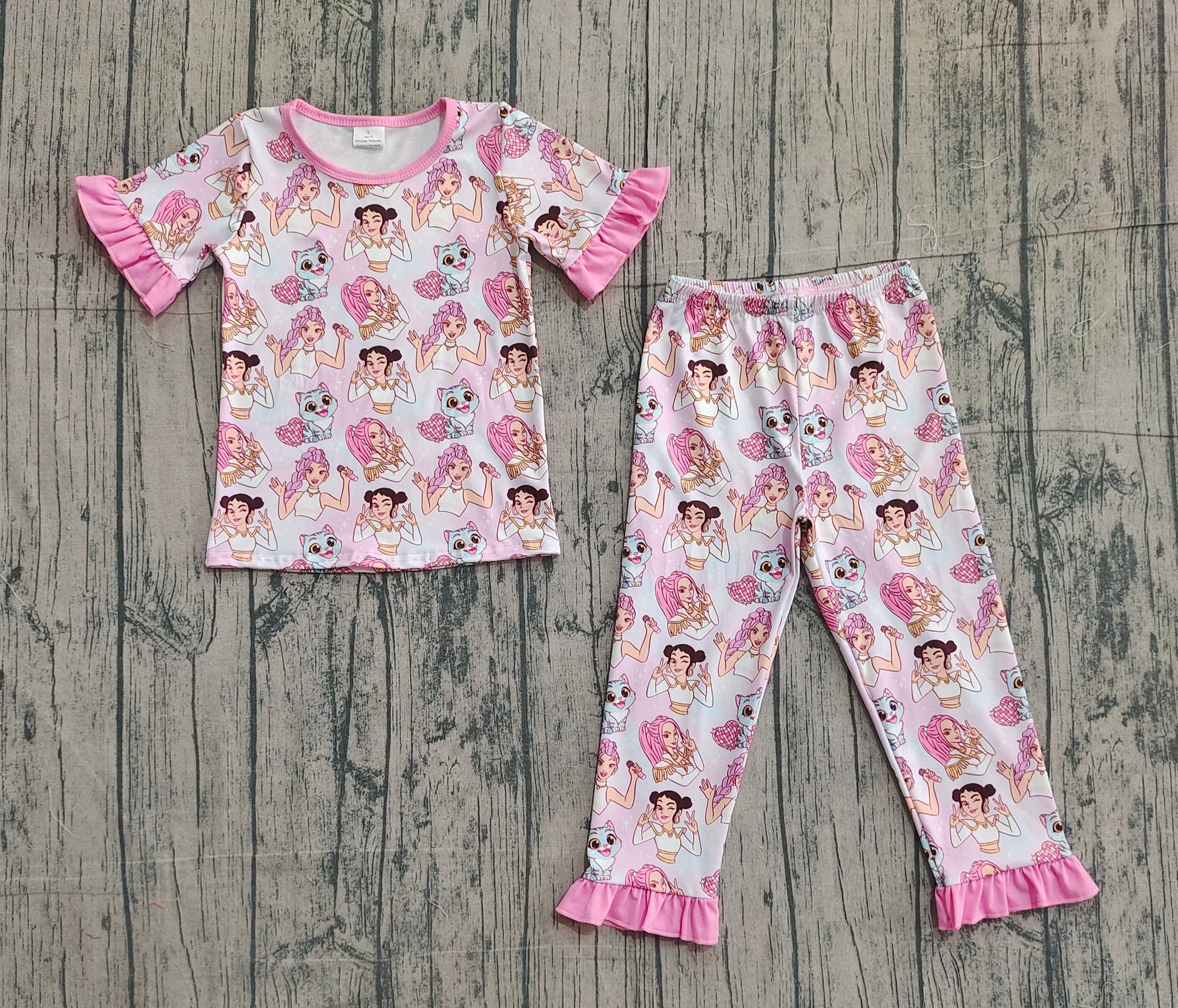 RTS Baby Girls Kids Short Sleeves Singer Shirt Hearts Pants Pajamas Set