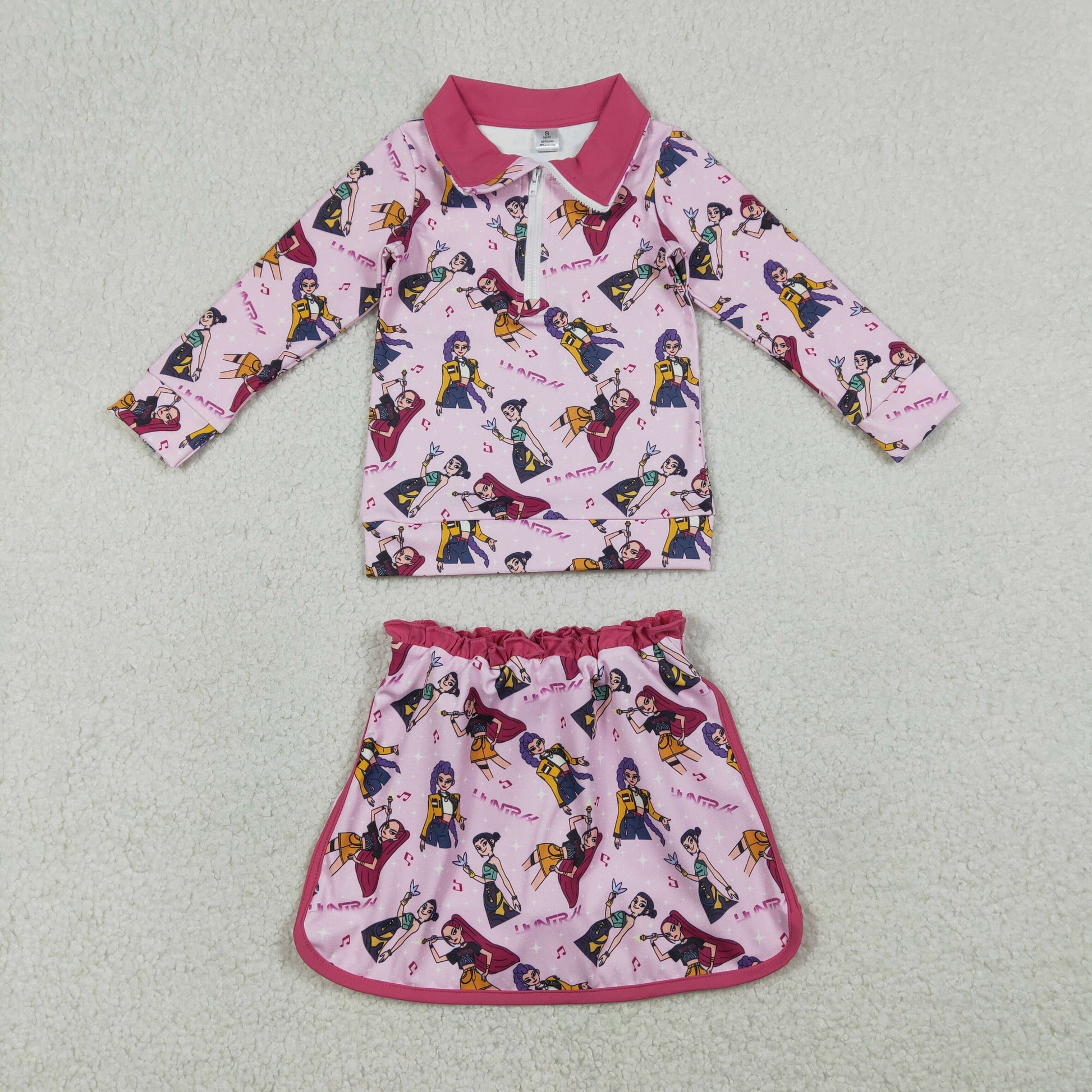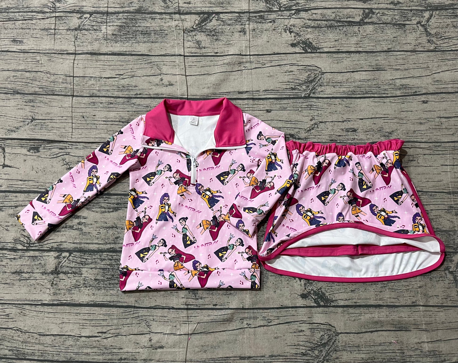 RTS Baby Girls Singer Characters Zipper Shirt Skirt Shorts Yoga Pink Clothes Set
