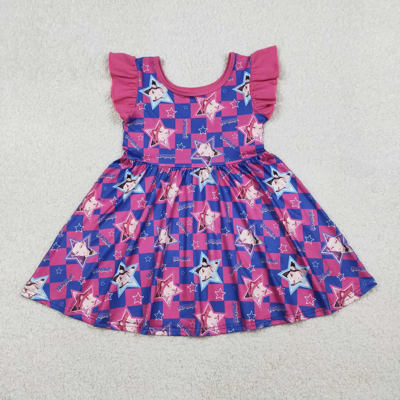 RTS Sibling Baby Girls Kids Short Sleeves Singer Stars Plaid Dress Pajamas Set