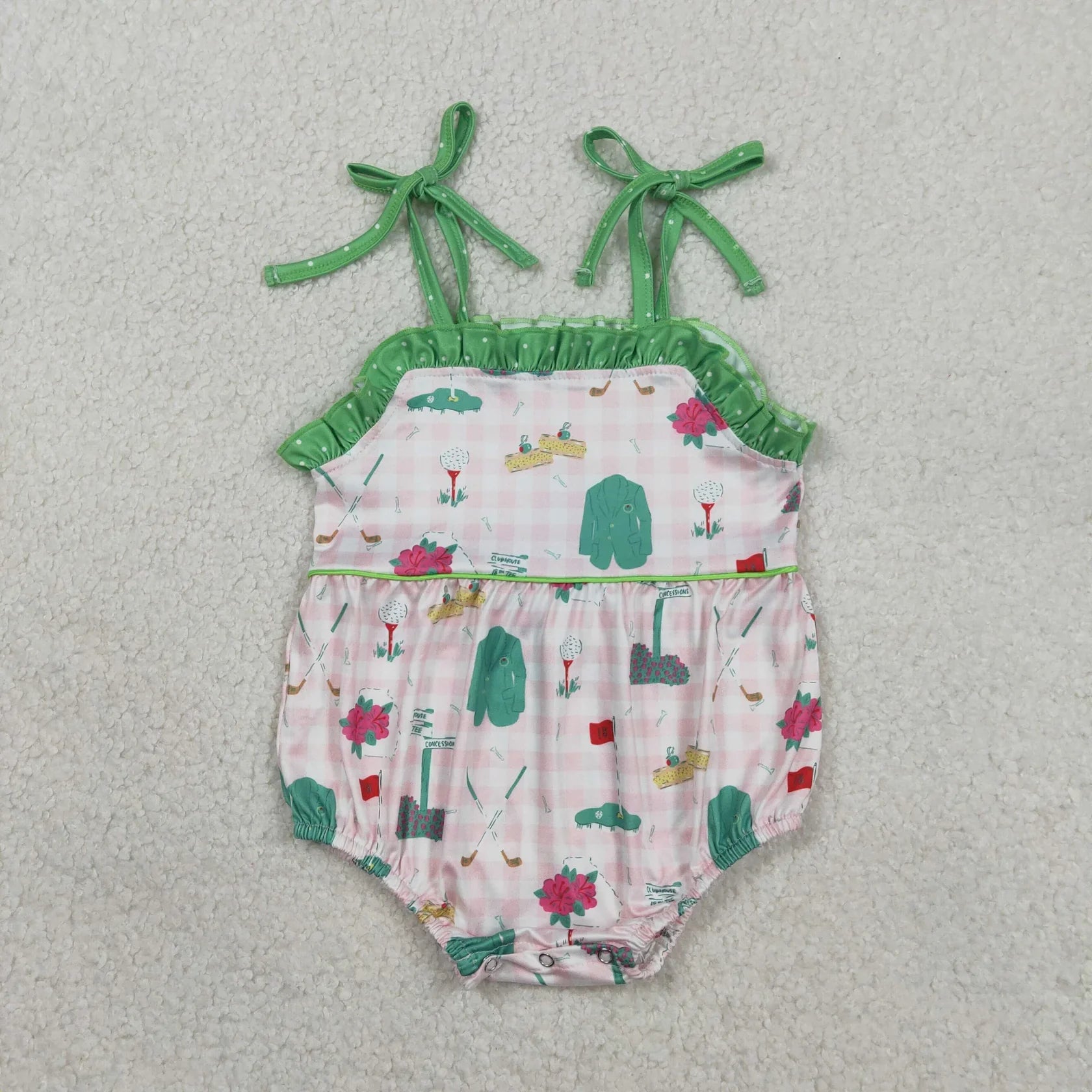 RTS Sibling Baby Girls Kids Straps Golf Plaid Summer Bubble Romper Set
